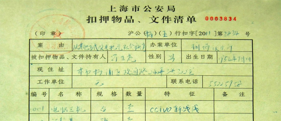 讨债:上海公安违法扣押冯正虎14台电脑等大批财物