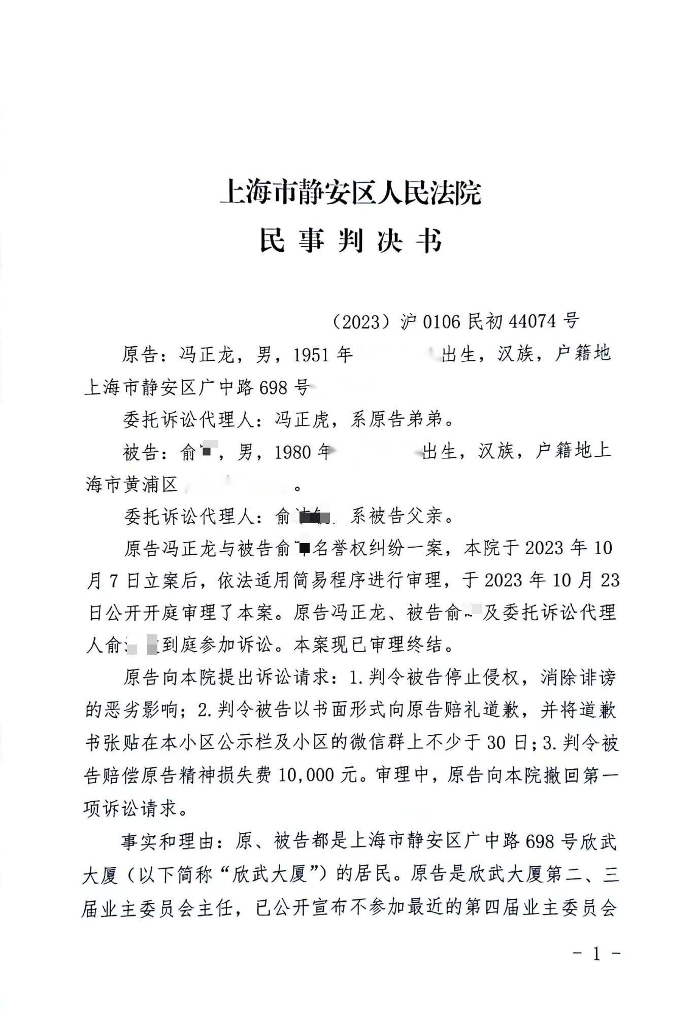 法院判定:捏造冯正虎是“一个反动分子”的不实言论,属诽谤行为