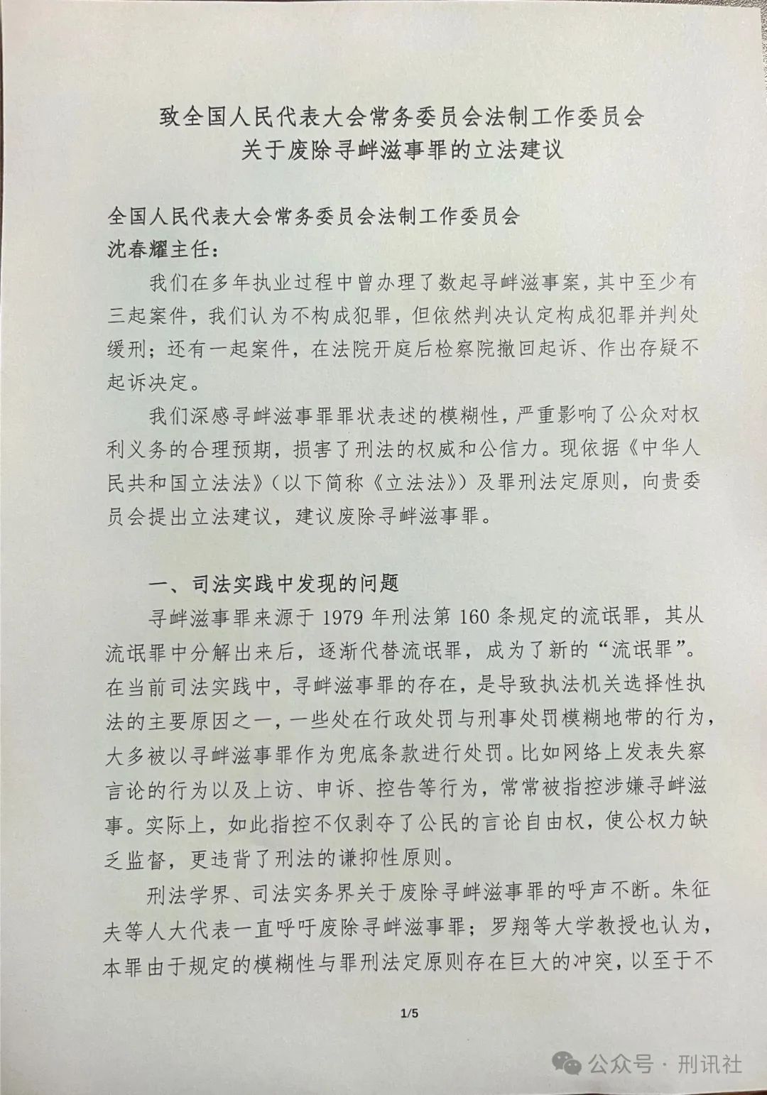 李兵:知名律师于凯再次上书全国人大,建议废除寻衅滋事罪!