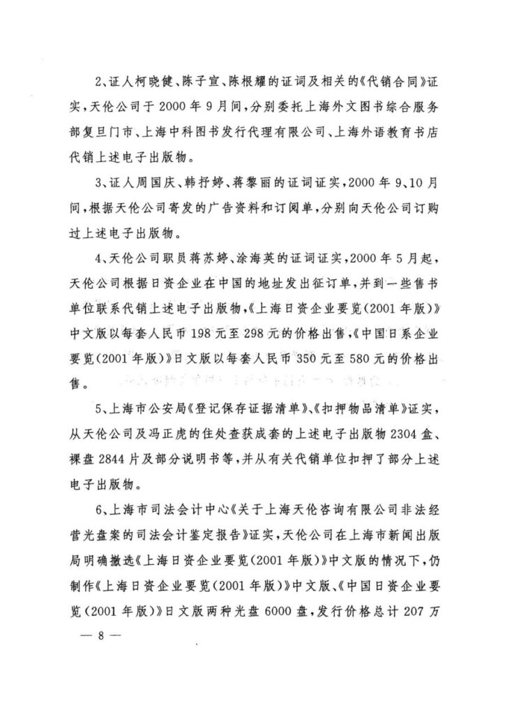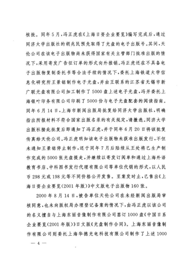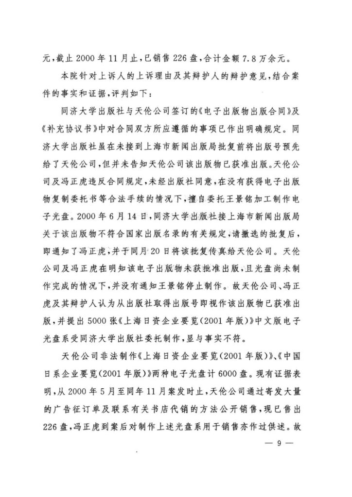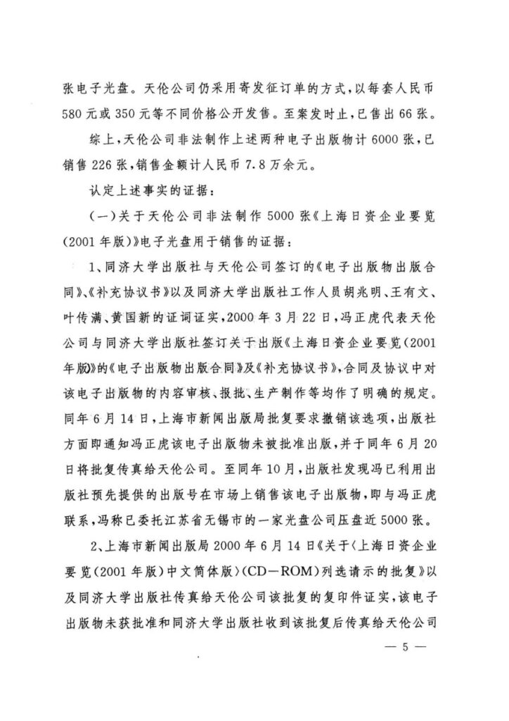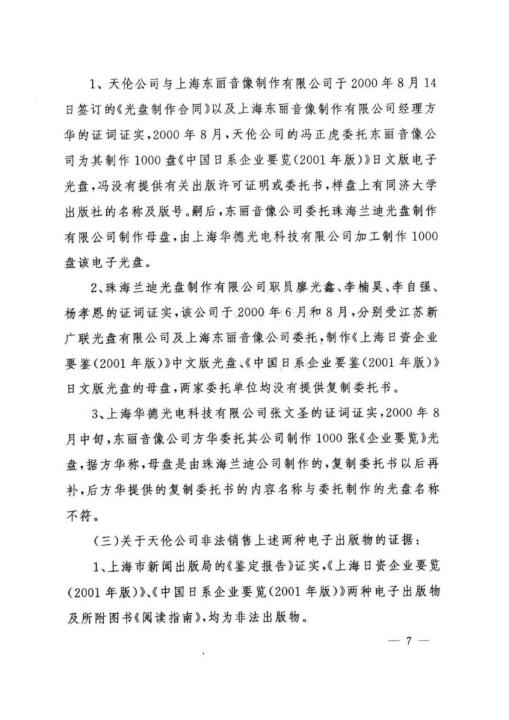 原审认定申诉人“私自印刷、复制、发行非法出版物”是整个错案的起点。然而,全面、完整的证据链条清晰地证明,涉案的《上海日资企业要览(2001年版)》光盘,是申诉人与同济大学出版社合作出版的合法出版物。