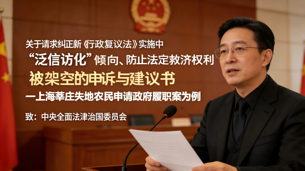 ——关于请求纠正新《行政复议法》实施中“泛信访化”倾向、防止法定救济权利被架空的申诉:以上海莘庄失地农民申请政府履职案为例