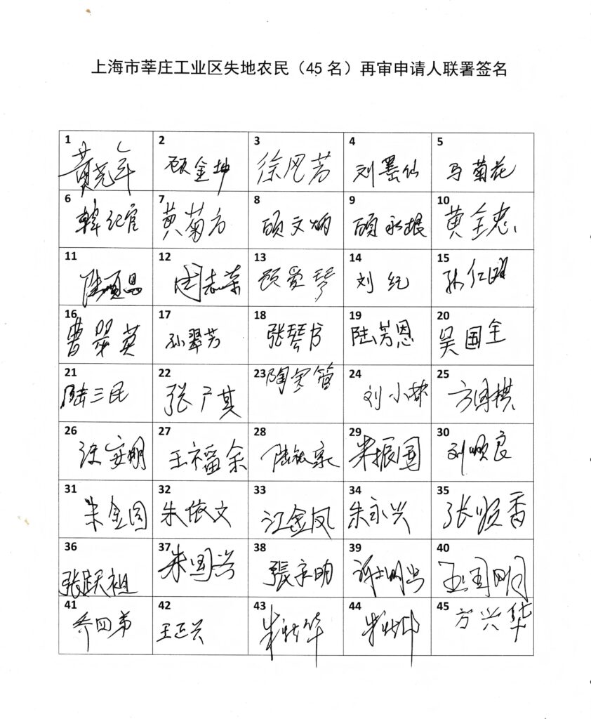2. 45名再审申请人(莘庄工业区失地农民)的联署签名