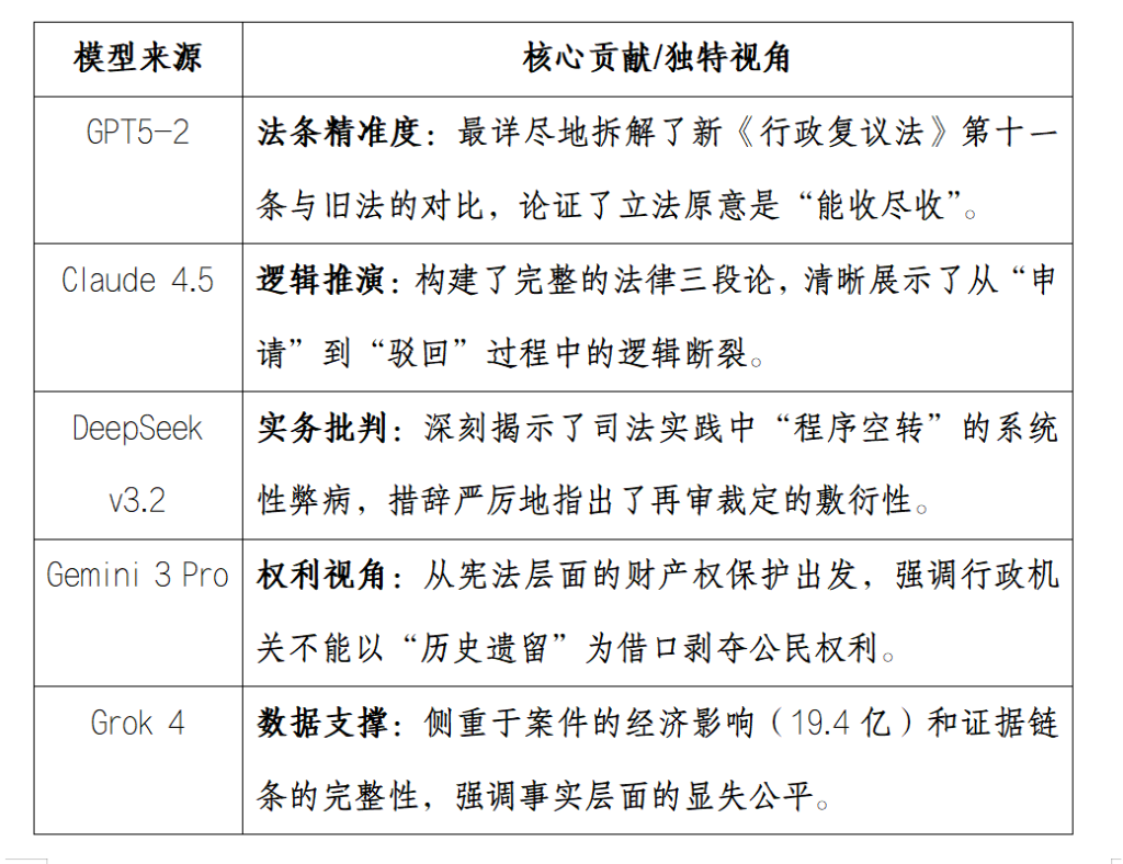 分析基础: DeepSeek v3.2、Claude Sonnet 4.5、Gemini 3 Pro、GPT-5.2、Grok 4 法律分析模型