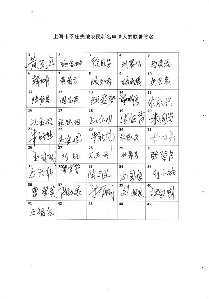 上海市闵行区莘庄工业区41名失地农民(签名附后):